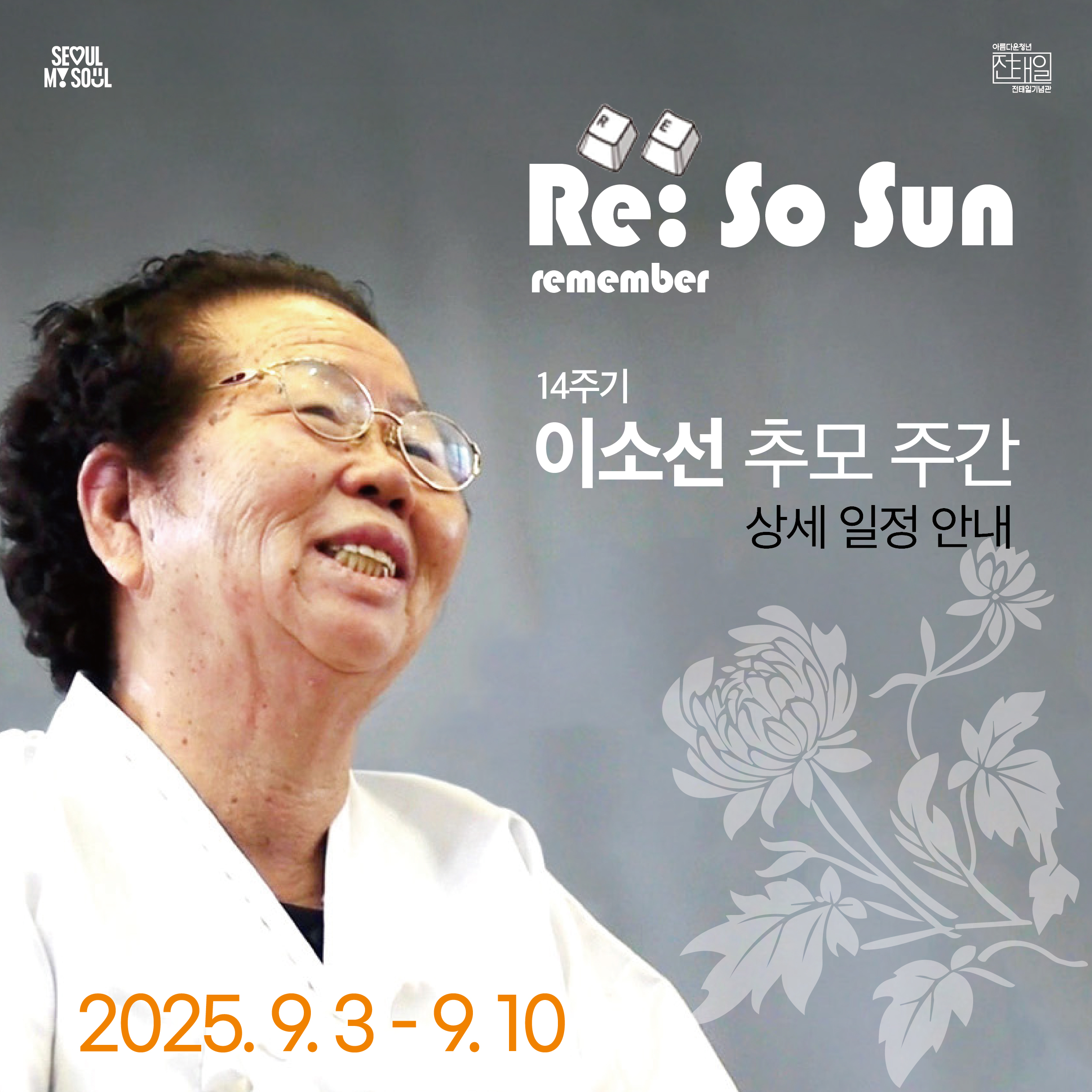 노동자의 어머니, 이소선 어머니의 14주기를 맞아 전태일기념관에서 추모주간 프로그램을 마련했습니다. 시민분향소, 사진전시, 영상 상영과 함께 "아들아, 함께 덩이를 굴리자!" 비정형 노동약자 토론회, 온라인 추모관 등 다양한 자리가 열립니다. 기억에서 실천으로, 여러분의 참여를 기다립니다.