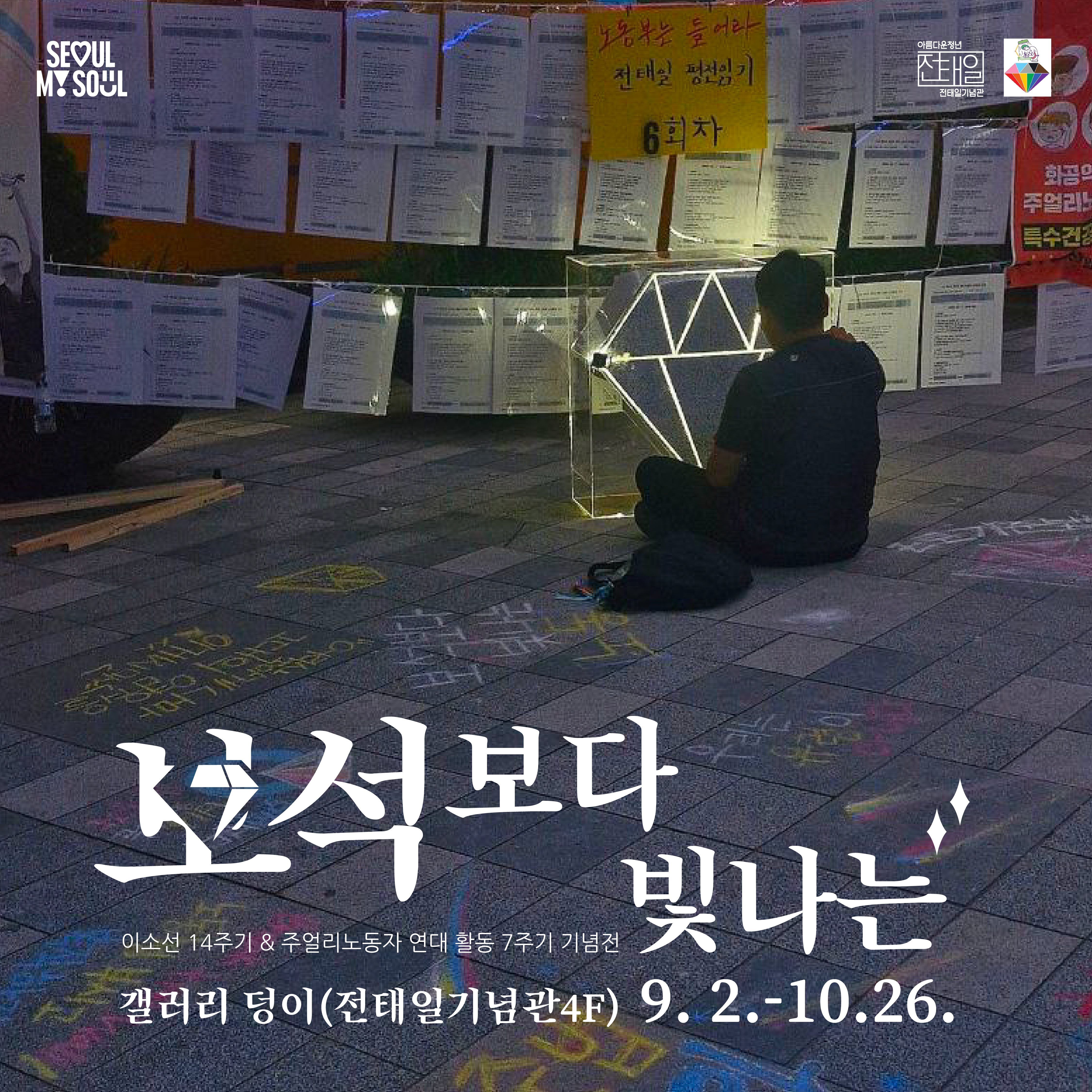 전태일 어머니 이소선 14주기와 주얼리 노동자들의 7년간 연대활동을 기리는 전시가 전태일기념관 갤러리덩이에서 열립니다. 다큐멘터리, 설치작품, 분필 그림, 그리고 ‘전태일 평전 읽기’ 기록을 통해 노동과 시민이 함께 걸어온 발자취를 돌아봅니다. “손잡아라, 하나 되어라.” 이번 전시는 지금 우리에게 필요한 연대의 힘을 다시 묻습니다.